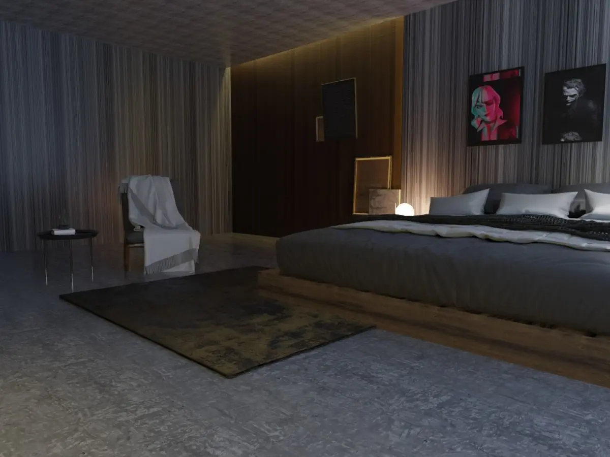 A 3D model of a luxury bedroom is a detailed digital representation of a bedroom space that has been designed with high-end furniture, finishes, and decor to create a luxurious and sophisticated ambiance.Overall, the 3D model of this luxury bedroom is a testament to the idea that a bedroom should be a comfortable and serene space that promotes relaxation and rejuvenation. The use of high-quality materials, custom-made furniture, and attention to detail in the design create a truly luxurious and sophisticated space that is both functional and beautiful.