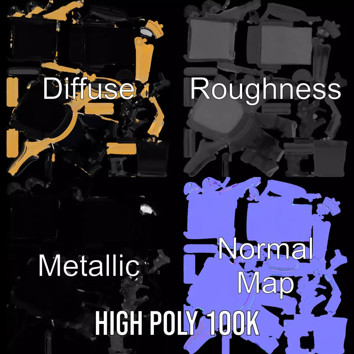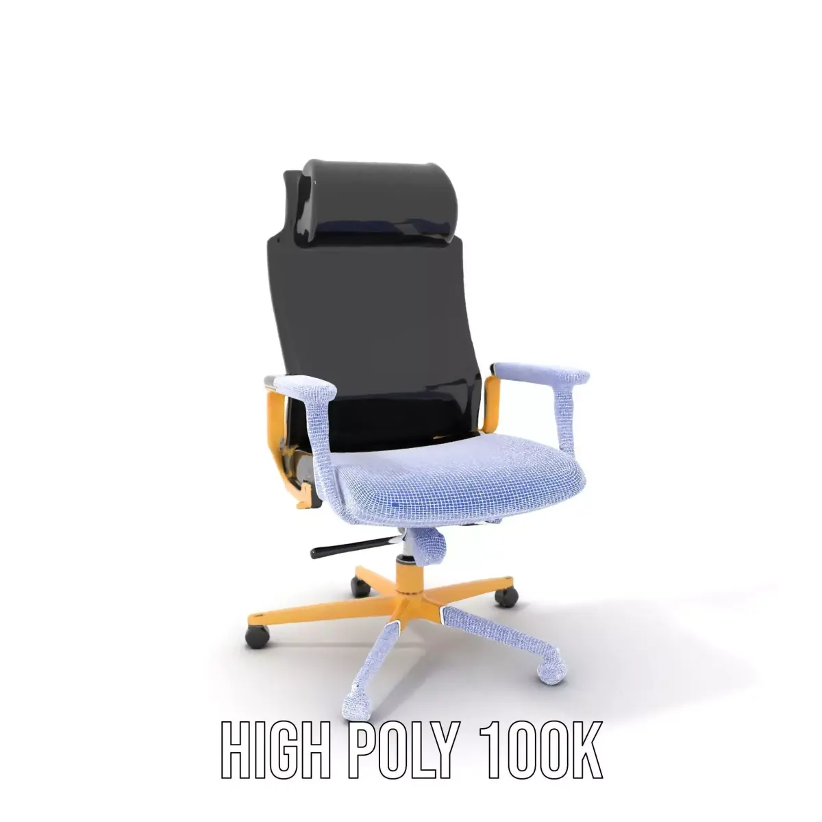 This luxury black office chair features a sleek black mesh and gold frame for an elegant office setup. Its ergonomic design provides comfort for long workdays while adding a sophisticated touch to any workspace. Each model has 3 levels of detail: low-poly (1000 triangles for mobile), middle-poly (10,000 triangles for environment), and high-poly (100,000 triangles), allowing for use in production rendering (such as 3ds Max, Maya, Cinema 4D, Blender, Vray/Corona/Cycles, and all other), game engines (Unity and Unreal compatible), and interactive presentations, providing a choice of detail based on the LOD System principle. Use this model in office design visualizations, video game environments, or virtual reality applications to showcase modern workspace aesthetics. The model's textures are PBR, Diffuse, NormalMap, and reflection/roughness/metallic, which are suitable for any modern rendering engine. All models are accurately unwrapped and have no overlapping UV. All textures are 4096*4096 in size. Please like and leave a comment if you enjoyed the model.