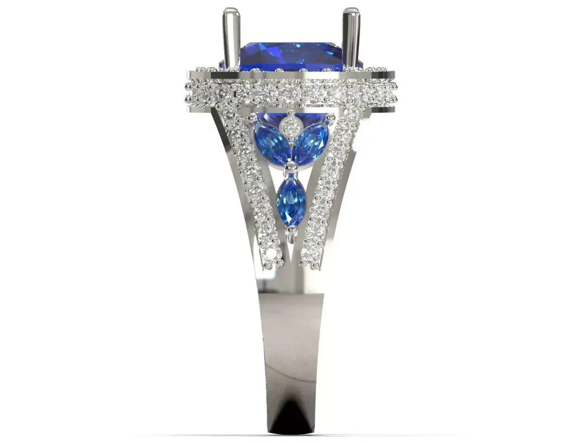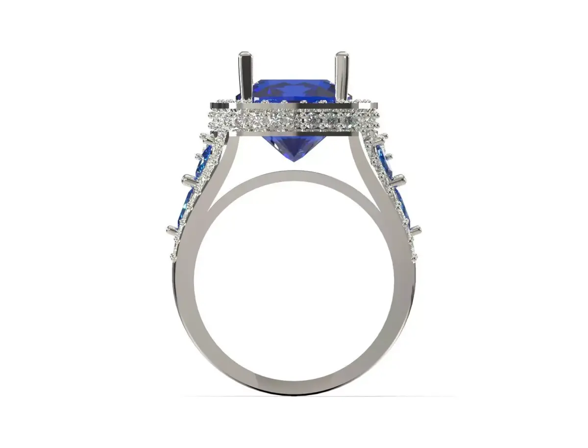 This elegant ring is made of white gold with an intricate design and sparkling diamonds and blue sapphires. The modern design and high-quality jewelry make this ring a great choice for luxury jewelry production. The 3D file of this ring is ready for use in CNC machines, casting, and 3D printing and can be easily produced.This 3D file is for jewelry designers and manufacturing workshops looking to create luxurious rings with precise details.