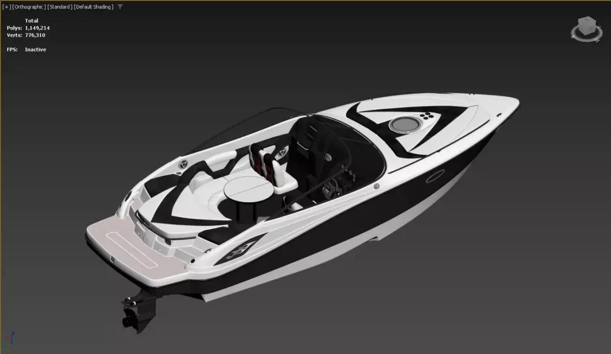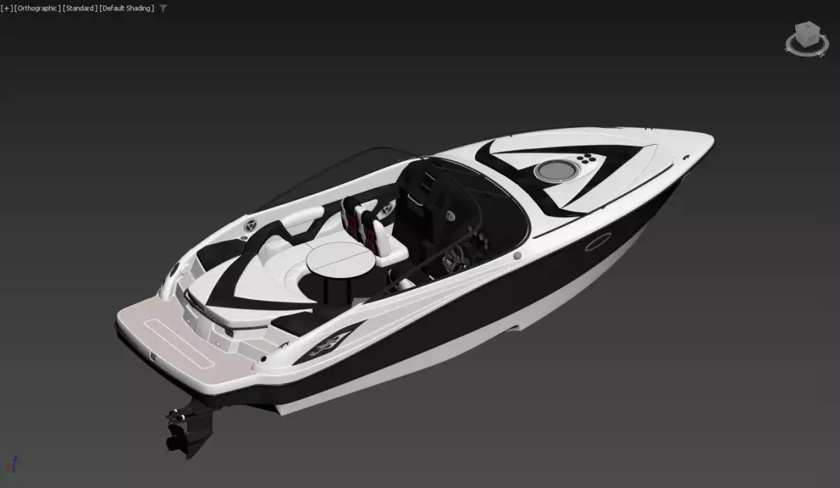 High-quality 3D model of a luxurious bowrider speedboat, perfect for marine scenes, games, animations, visualizations, or any water-based environments. This sleek open-bow powerboat features a striking black and white exterior with glossy finishes, a spacious cockpit, and premium interior detailing for an upscale recreational feel.Key features: