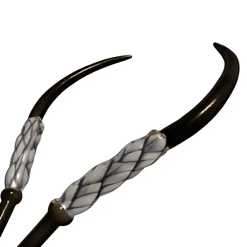 This exquisitely detailed 3D model presents a pair of elegant, curved crafting needles, perfect for adding a touch of sophistication to any digital scene. The design features a luxurious braided texture section, meticulously modeled to capture intricate detail and realism. This is beautifully complemented by polished metallic gold-toned tips and bases, which reflect light dynamically. This high-fidelity asset is ideal for a myriad of professional applications across various industries. It can be perfectly utilized in interior architectural visualizations, providing realistic detail for close-up product renderings, or serving as a sophisticated prop within game development environments. Furthermore, its quality makes it suitable for enriching digital art compositions and cinematic sequences. The model's clean topology ensures smooth subdivision, allowing for high-resolution renders and easy integration into diverse 3D pipelines. It comes fully UV unwrapped with a non-overlapping layout, making it ready for advanced PBR texture application, which enables physically accurate material rendering. Supported file formats include GLB, OBJ, FBX, USD, DAE, ABC, and PLY, ensuring broad compatibility with major 3D software and game engines. While primarily optimized for high-quality static renders and close-ups, its efficient mesh structure allows for potential optimization for real-time applications such as augmented reality (AR) and virtual reality (VR) experiences where visual fidelity is paramount. This versatile asset is a must-have for designers seeking premium quality crafting tool representations.