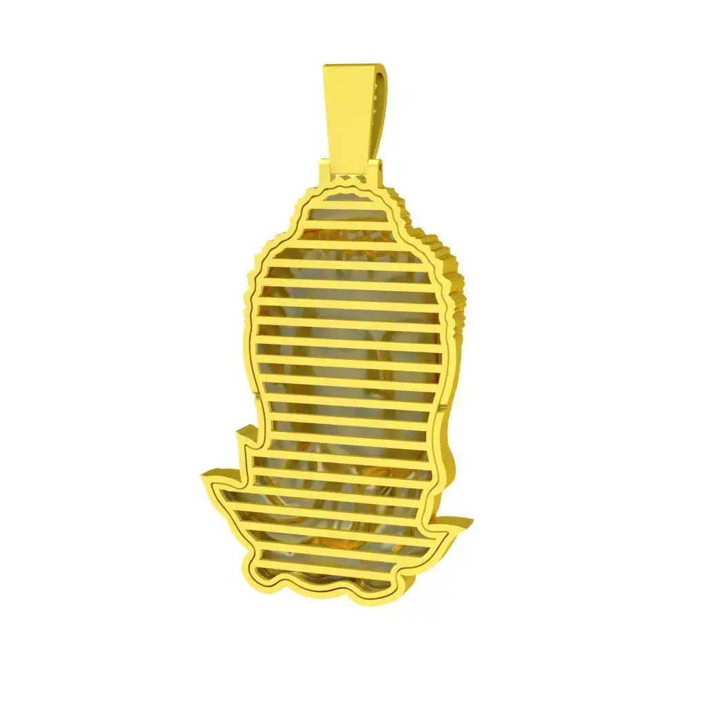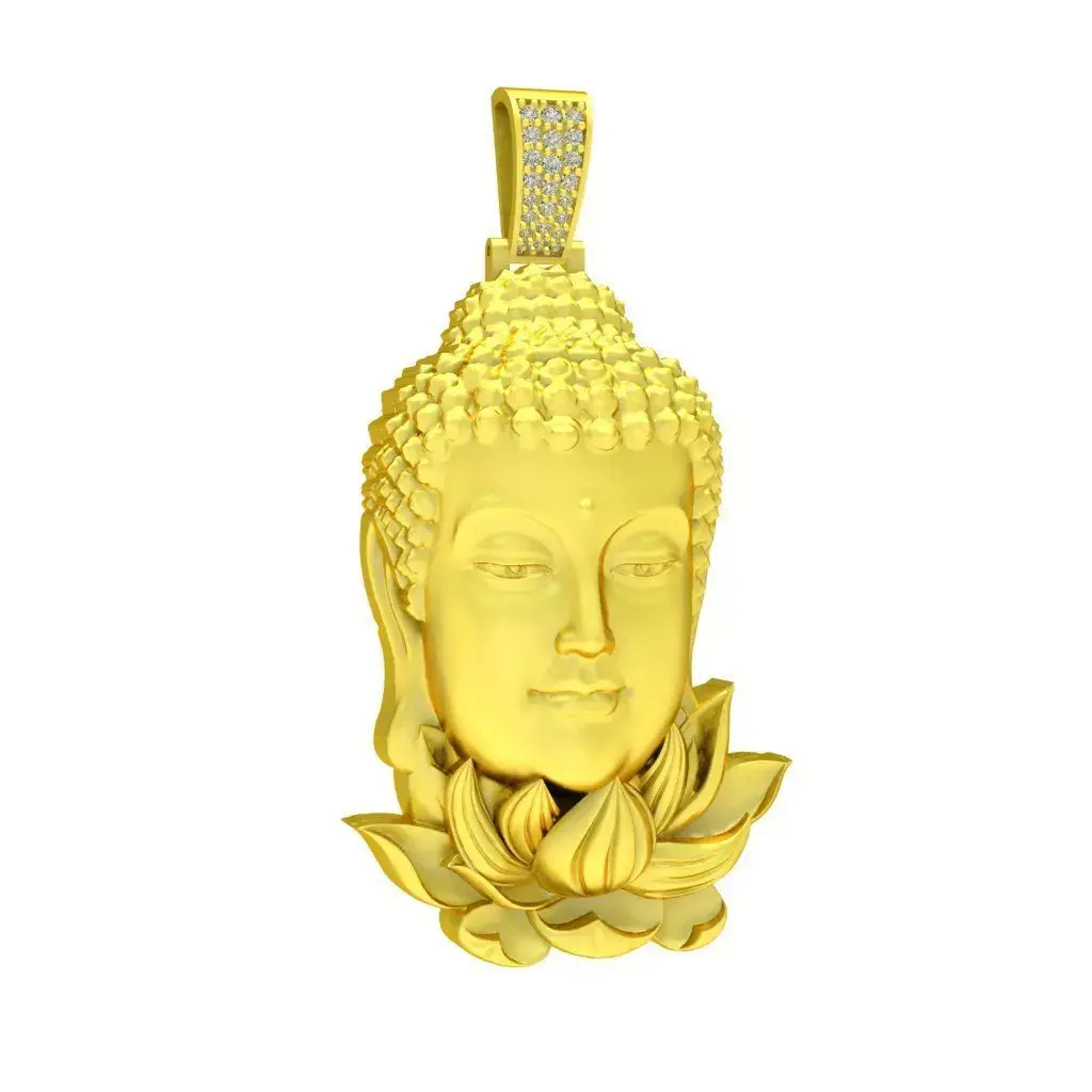 This luxury pendant design features a serene Buddha head resting on a finely sculpted lotus base, symbolizing peace, wisdom, enlightenment, and spiritual protection. The Buddha’s facial expression is calm and balanced, with carefully refined contours that convey harmony and inner tranquility. The lotus base is sculpted with layered petals, adding depth, elegance, and symbolic meaning to the overall composition.