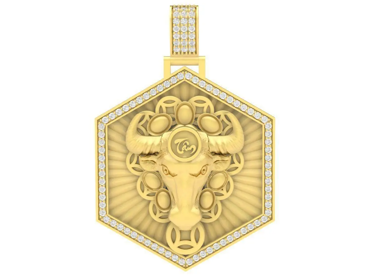This luxury bull head hexagon pendant is a powerful and masculine jewelry design, symbolizing strength, determination, prosperity, and resilience. The detailed bull head is sculpted in high relief at the center of a clean hexagonal frame, creating a bold and confident appearance suitable for men’s jewelry collections.