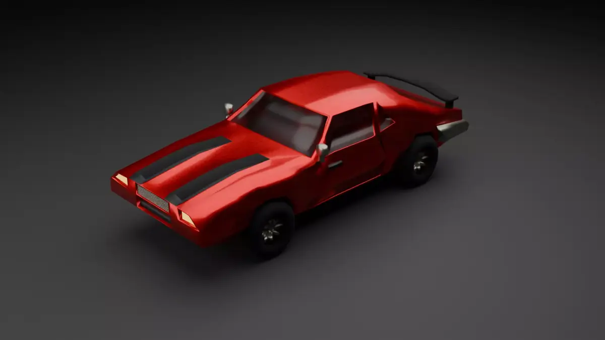 This is a high-quality, low-poly 3D vehicle model designed with a focus on performance and aesthetic appeal. Styled after iconic 1970s American muscle cars, the model features a sharp, wedge profile, prominent hood stripes, and an integrated rear spoiler that gives it a fast, aerodynamic silhouette.