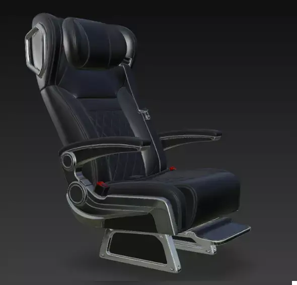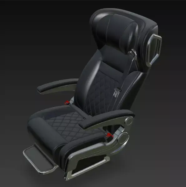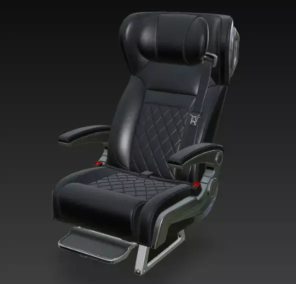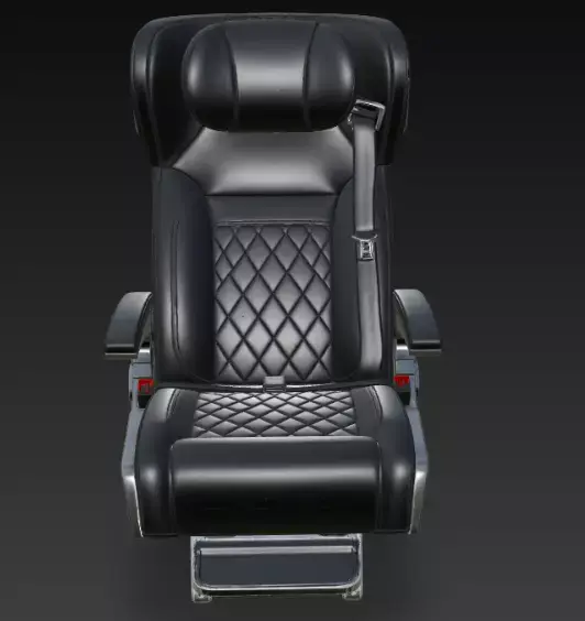 Ultra-realistic, high-detail luxury automotive captain seat / VIP van seat 3D model featuring premium black quilted leather upholstery, chrome-metal accents, adjustable headrest, integrated seat belt, reclining mechanism with footrest, and ergonomic armrests. Perfect for luxury van interiors, high-end SUV concepts, limo renders, cinematic car scenes, VR showrooms, and archviz. Clean quad topology, fully UV-unwrapped, 4K PBR textures