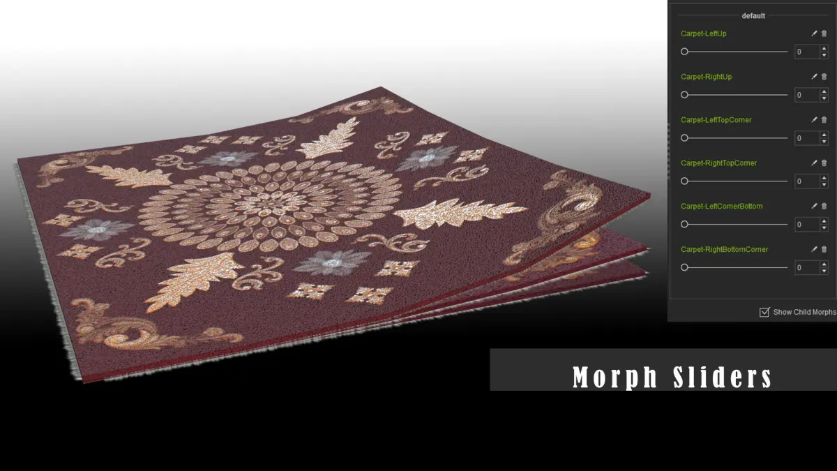 Luxury Carpets is a functional series, which aims at providing 3D game developers and CG animators to apply the assets into their scene in a fast and efficient way. Luxury Carpet-01 is one of the props in this series which has elegant Indian patterns, morph sliders for iclone animation and shape key for Blender animation