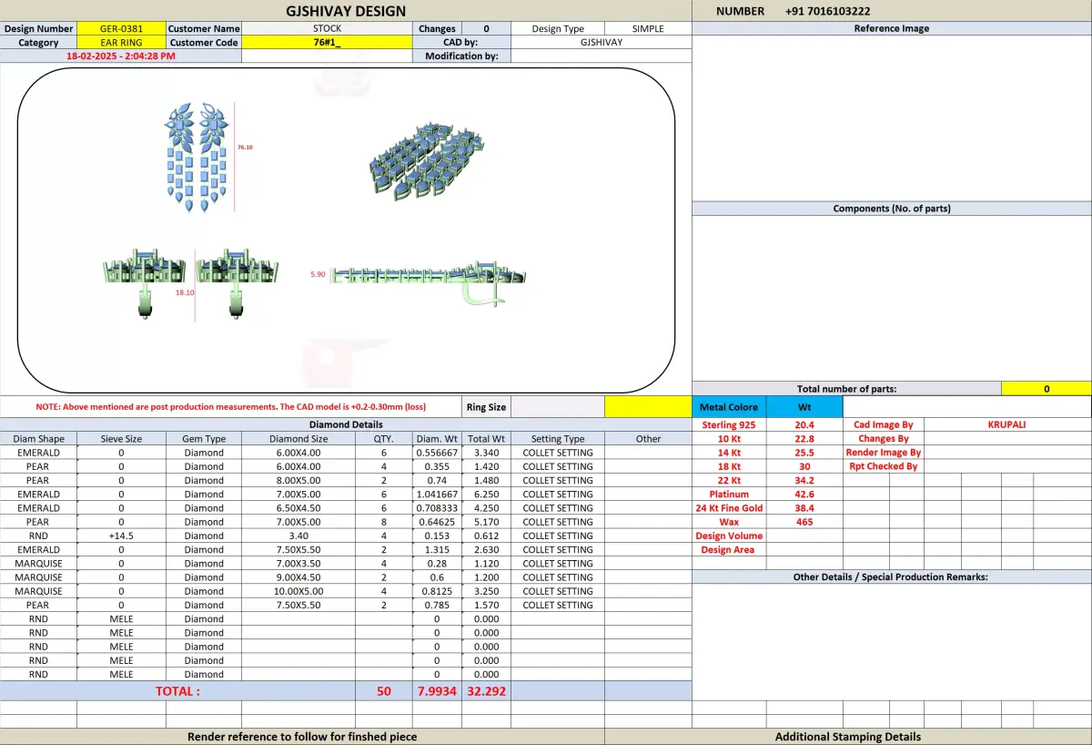 Post-purchase customer support is available for file assistance, resizing, stone layout adjustments, and design modifications. Custom CAD changes can be provided according to specific manufacturing or branding requirements.