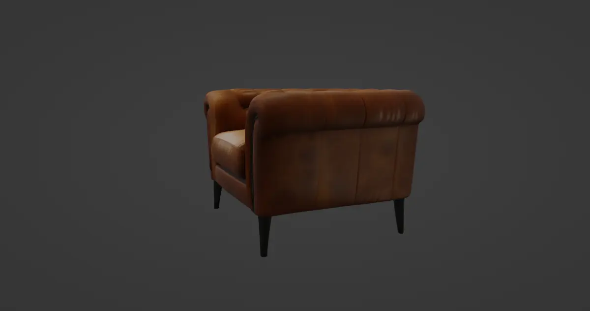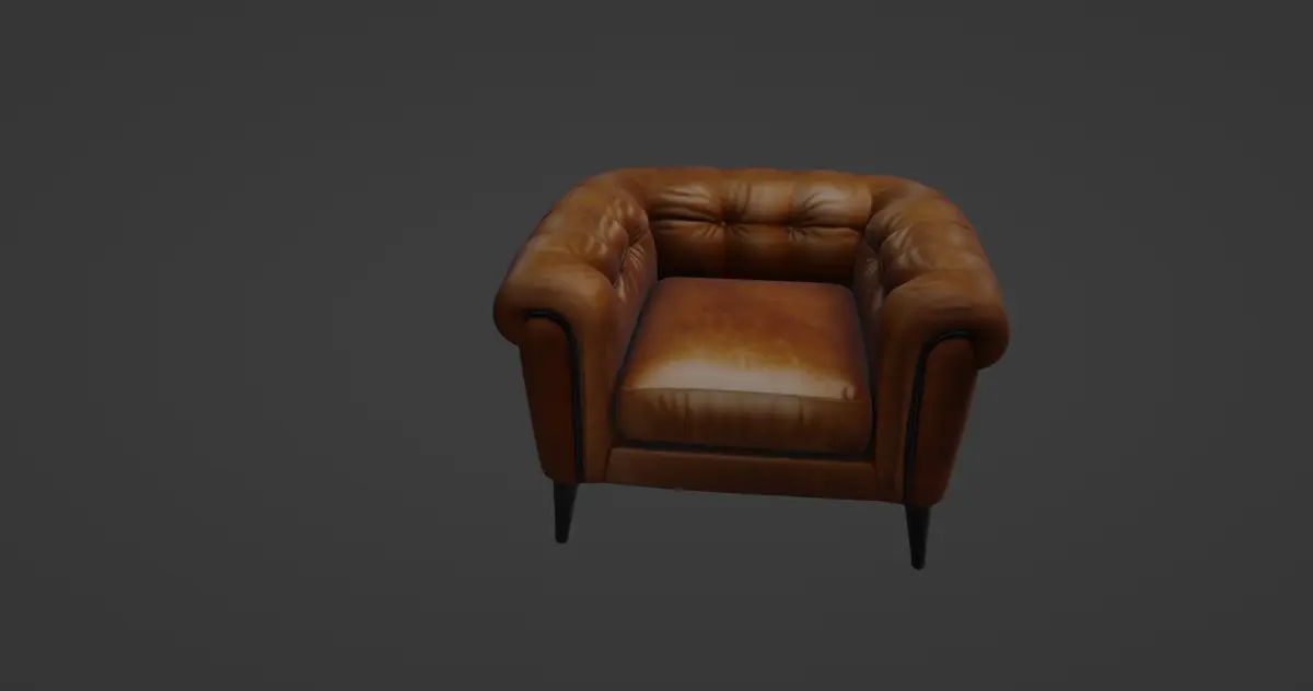 This 3D model features a classic Chesterfield-style armchair, exuding luxury and timeless elegance. Designed with a soft, tufted leather surface, this chair boasts intricate button detailing and a rich caramel-brown color, making it a perfect centerpiece for any virtual interior space. The model is skillfully crafted to capture every curve and contour of the upholstery, along with fine stitching details that highlight its realism. The armchair sits on sleek, tapered wooden legs, which add a modern touch to its vintage aesthetic. The plump, removable seat cushion enhances comfort while maintaining its structured design. Its leather surface reflects subtle lighting variations, making it suitable for high-quality visualizations in living room or office settings. This model is carefully optimized to ensure seamless integration into any 3D environment, maintaining both aesthetic appeal and performance efficiency.The armchair is downloadable in .gmb format, complete with a detailed texture map included for a realistic appearance. It is also available in .fbx format, compatible with a wide range of 3D rendering and animation software. This versatility ensures it can be easily used for architectural renders, game development, and virtual reality applications.Whether you are designing a modern office, a cozy library, or a chic apartment, this Chesterfield armchair model provides both versatility and unmatched realism. Its meticulous attention to detail makes it a standout addition to any virtual interior design project.