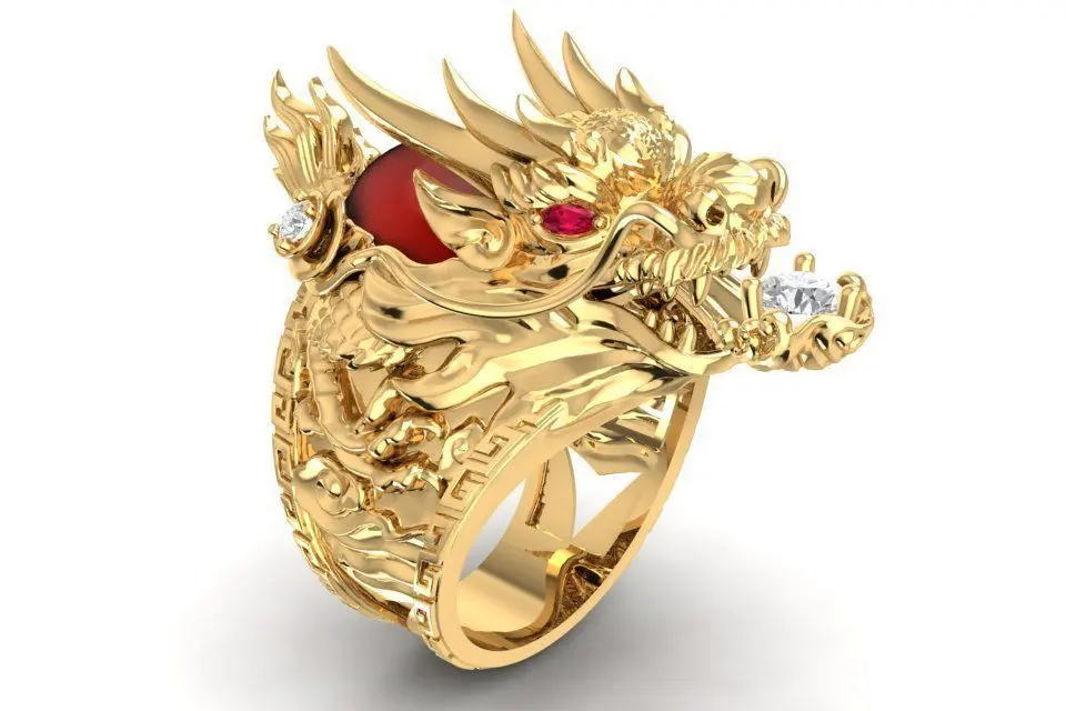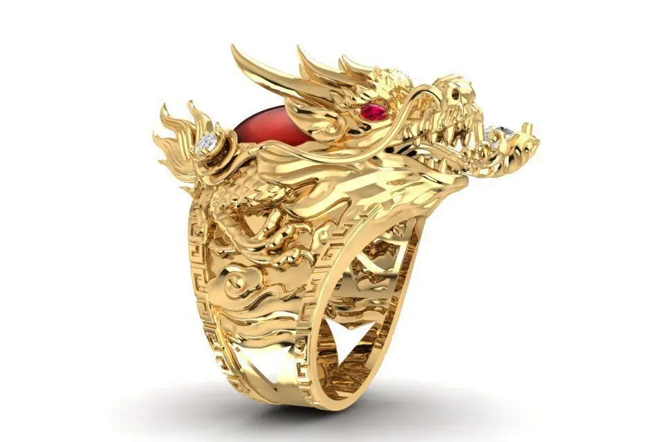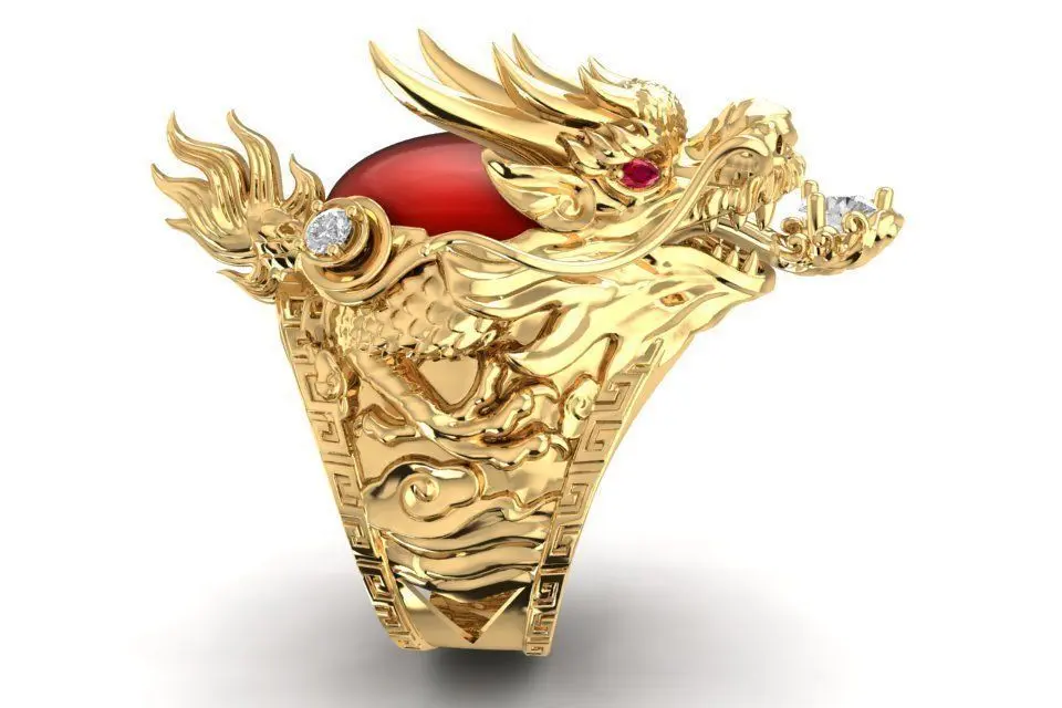 This 3D model showcases a luxury Chinese dragon gold ring for men, symbolizing power, protection, and prosperity.