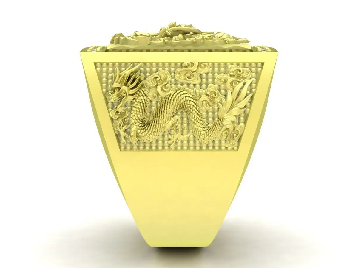 This luxury Chinese dragon signet men ring 3D model features a powerful and highly detailed design inspired by traditional Eastern symbolism and classic signet ring craftsmanship. The top surface showcases a sculpted Chinese dragon relief, framed by a geometric border pattern that enhances strength, balance, and masculine character.