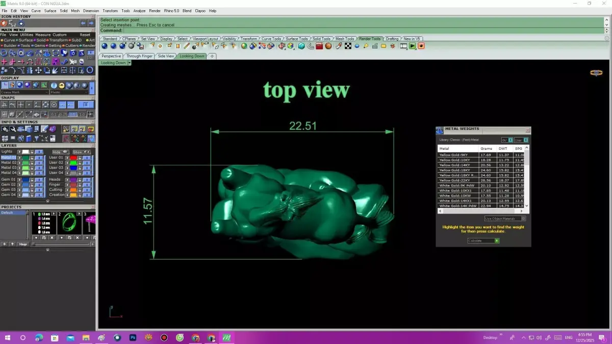 All dimensions, weight, and structural details are clearly shown in the preview images for accurate production planning. The model is suitable for gold, silver, brass, or resin casting and can be easily scaled or modified according to design requirements.