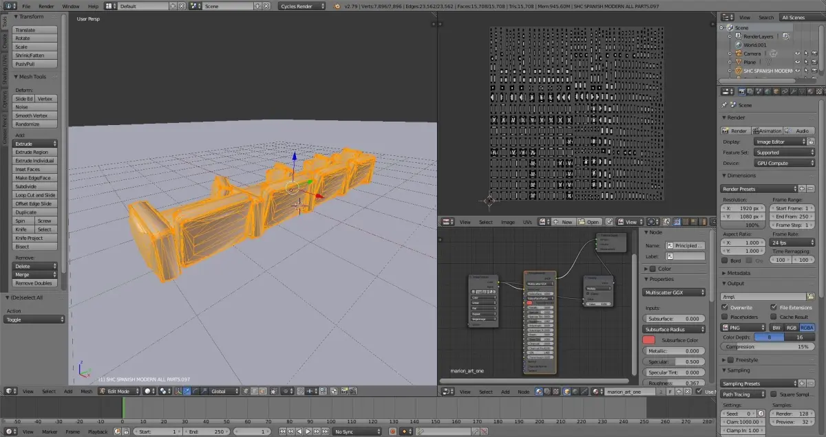 -Materials including shaders are available in the blender file (roughness is generated with the materials texture file)