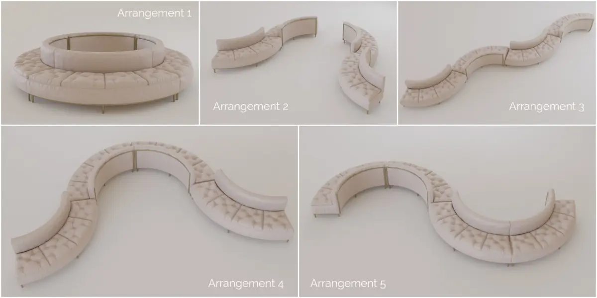 This pack contains a single seating module and 5 different modular arrangements (4 modules each)