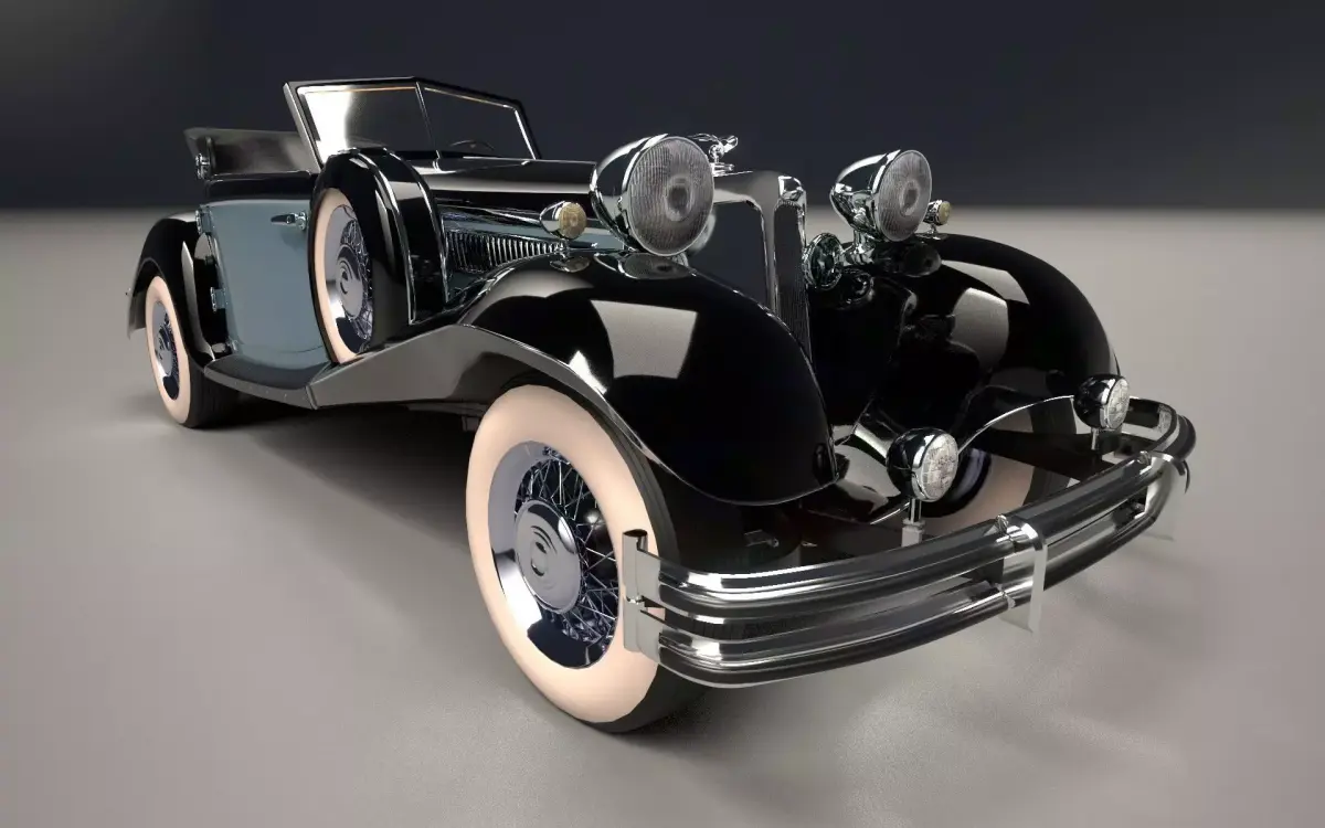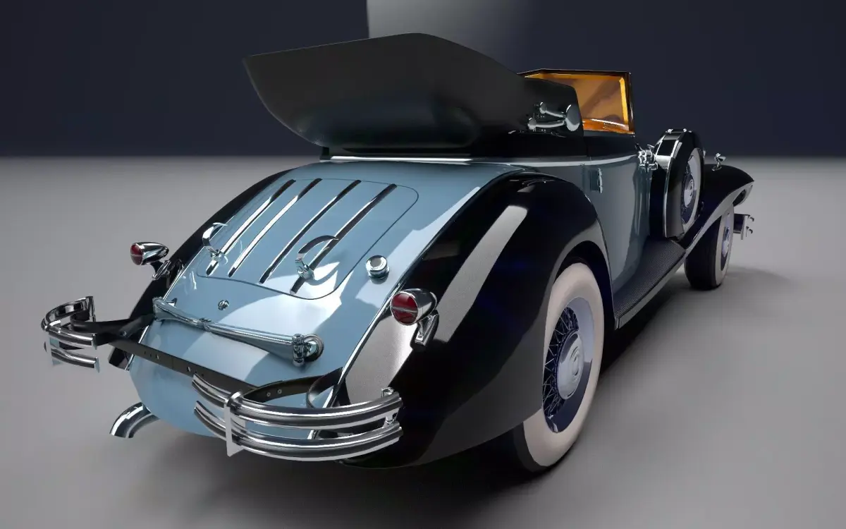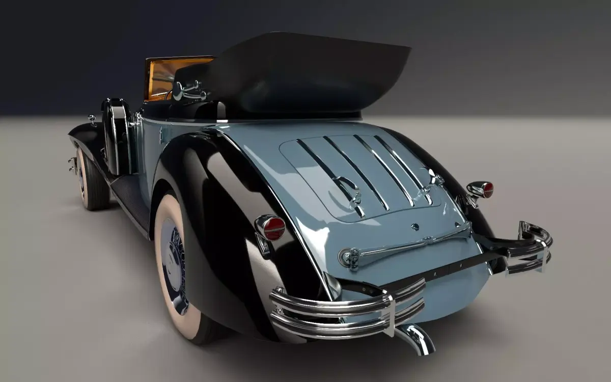 This is a 3D model of a classic car from the 1930s and 1940s. It's a luxury car with exquisite leather, wood, and chrome finishes. It features a 5.0-liter eight-cylinder engine and sophisticated design. The attention to detail and quality construction make it a highly prized classic. It weighs 2,630 kilos and is 5.3 meters long. Its textures are in 2k, and the files are available in various formats. Contact me for more colors and details.