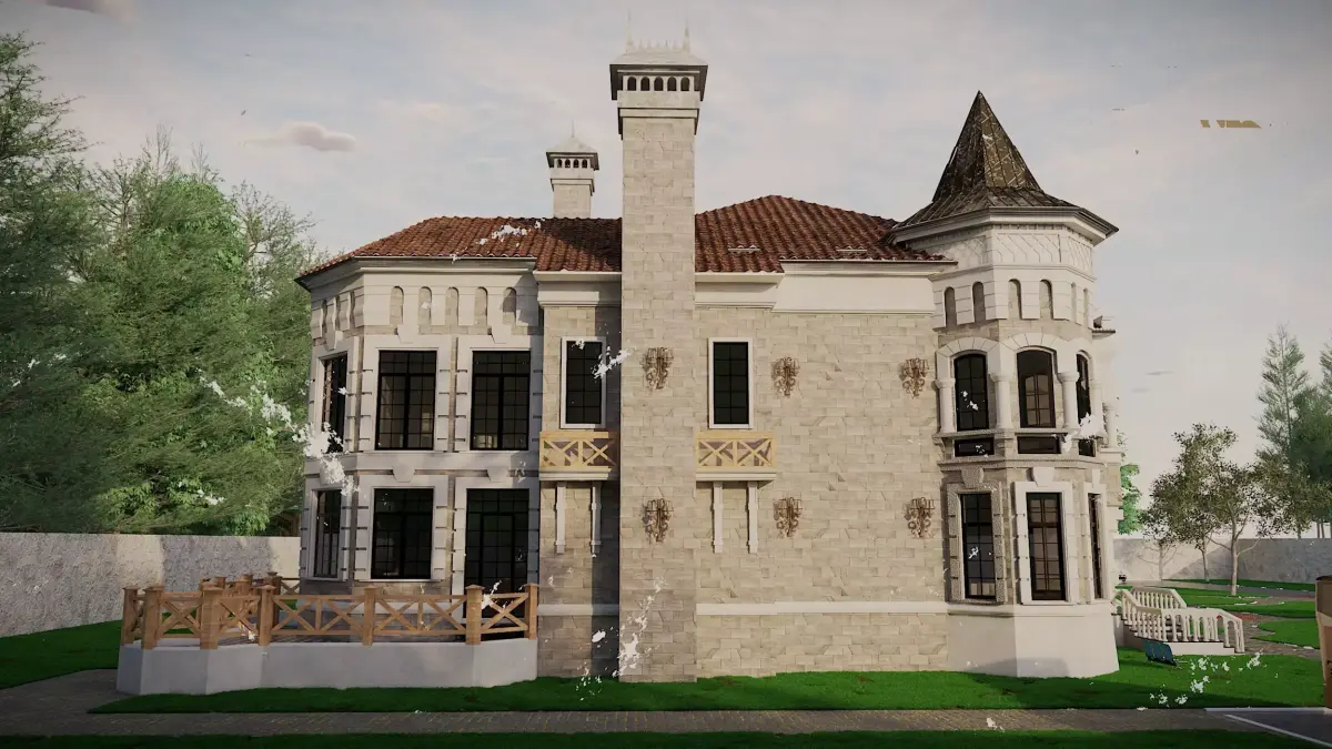 This 3D model represents a luxury classical-style school building designed and modeled in SketchUp, rendered using V-Ray. The structure combines elegant architecture with realistic detailing—perfect for architectural visualization, animation, and rendering projects.