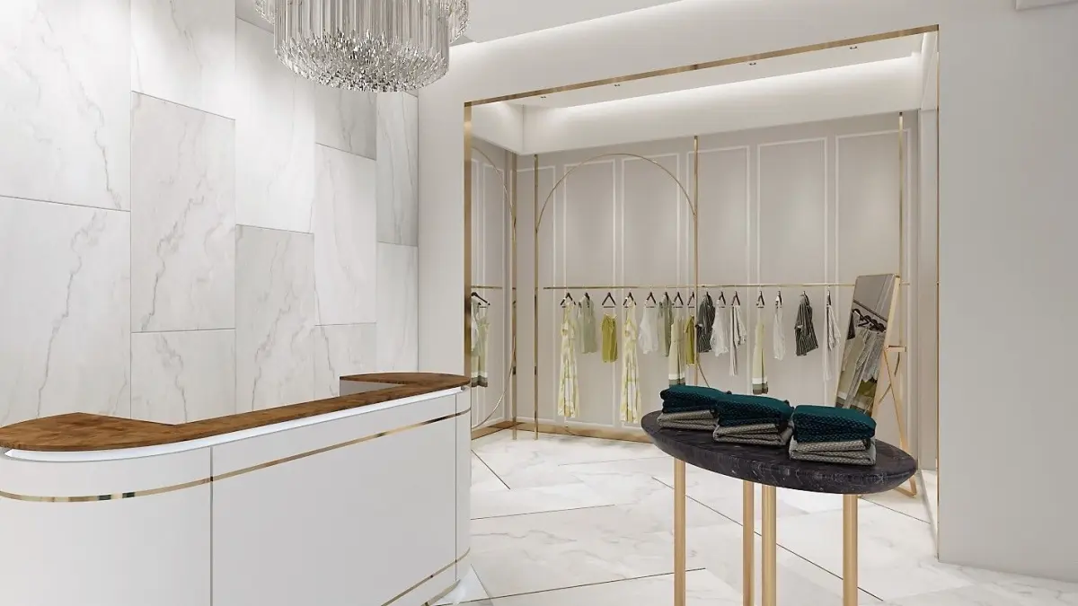 Natural Lighting: Bathe the space in soft, natural light streaming through expansive windows, creating a warm and inviting ambiance. Enhance the mood with strategically placed lighting fixtures that accentuate key design elements and highlight the beauty of your luxurious fashion offerings.