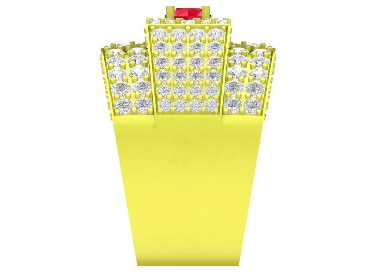 The top surface is designed with a symmetrical stone arrangement, creating strong brilliance and depth from multiple viewing angles. Each stone seat is carefully modeled with consistent spacing and secure settings, suitable for high-end men’s jewelry production.