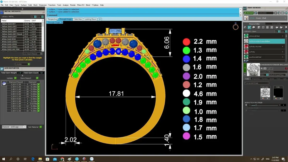 This model is fully prepared for jewelry production and supports resin 3D printing and casting in gold, silver, or platinum. Rendered images include complete technical views displaying dimensions, stone sizes, and setting layout, allowing manufacturers to proceed confidently without additional redesign.