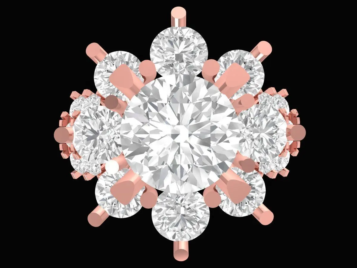 The model is optimized for precious metals such as gold, rose gold, platinum, or silver, and is ideal for jewelers, manufacturers, and designers developing cluster rings, floral jewelry, or custom fine jewelry pieces.