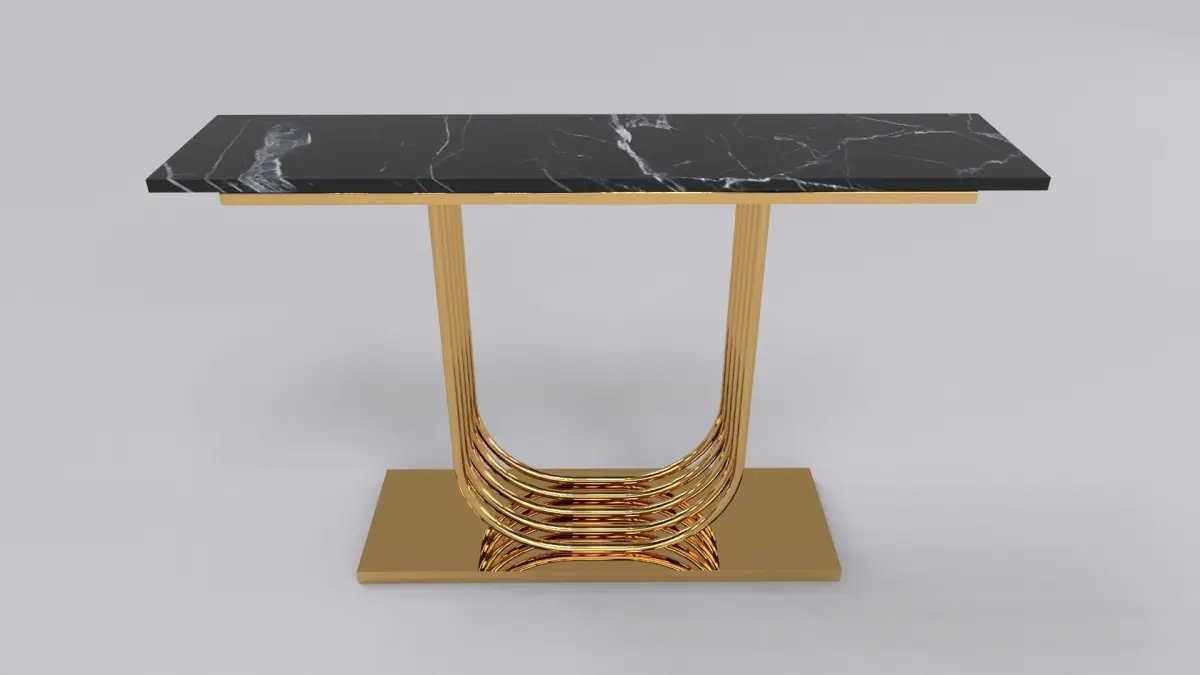 This model has amount polygon 1747 and 3540 edges, texture this model gold and terxture pbr marble calacatta black, this model This model has a shape like the letter U and has around 5 pliers resting on a stainless plate, this model has a size of 130 X 30 cm,and this model is very suitable to be placed in the living room, dining room, bed. This model is very unique and interesting