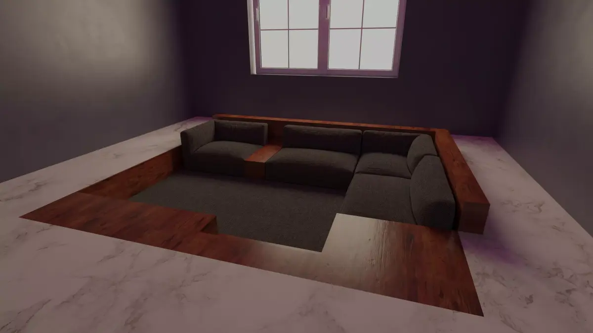 This meticulously detailed 3D model of a modern sunken living area (Conversation Pit) is designed for high-quality architectural visualization and game environment creation. Perfect for adding a unique, luxurious focal point to any interior scene.