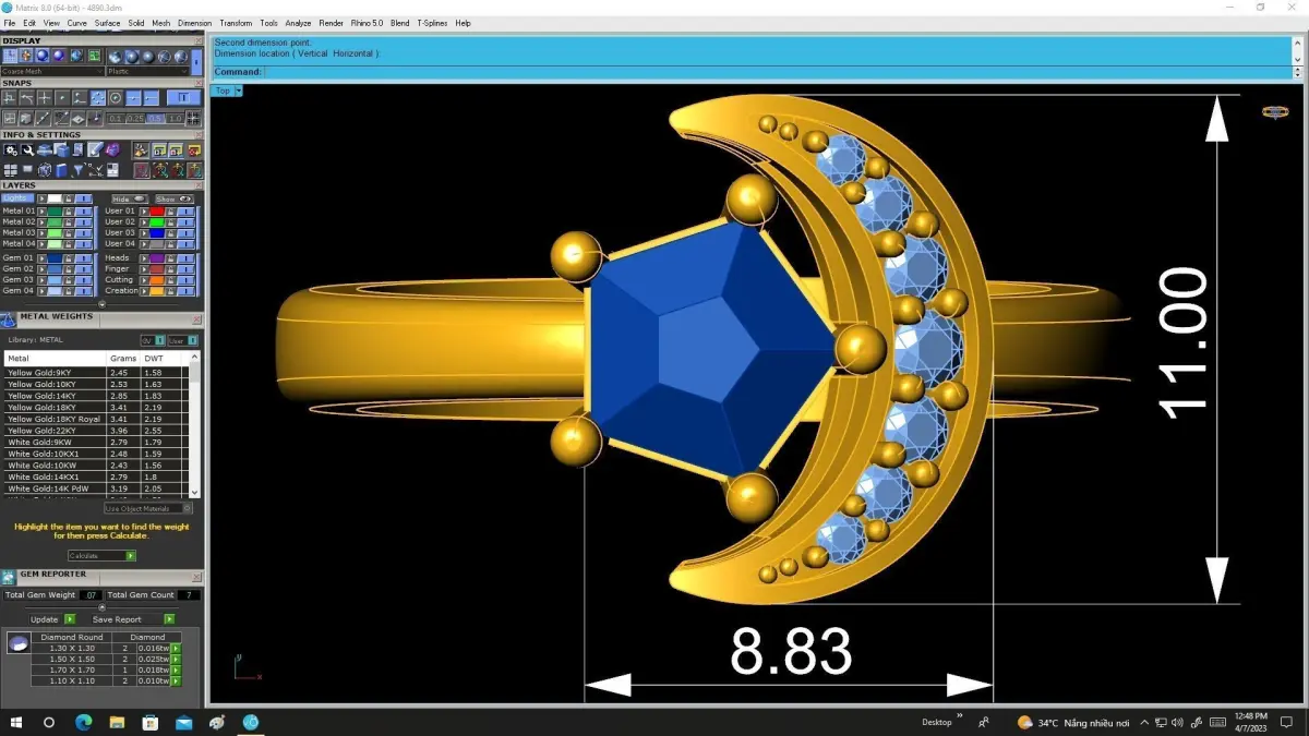 This model is professionally designed for jewelry manufacturing and optimized for 3D printing and casting workflows. All preview images include accurate measurements, stone sizes, quantities, and estimated metal weight, allowing jewelers to precisely evaluate production costs and technical requirements before fabrication.