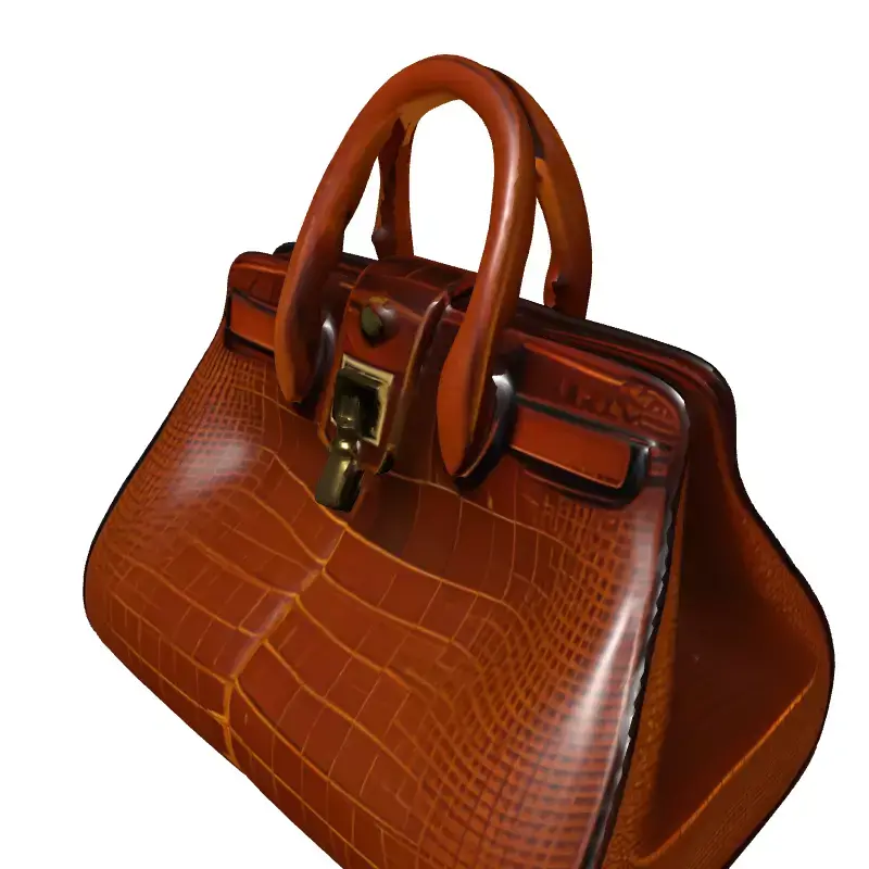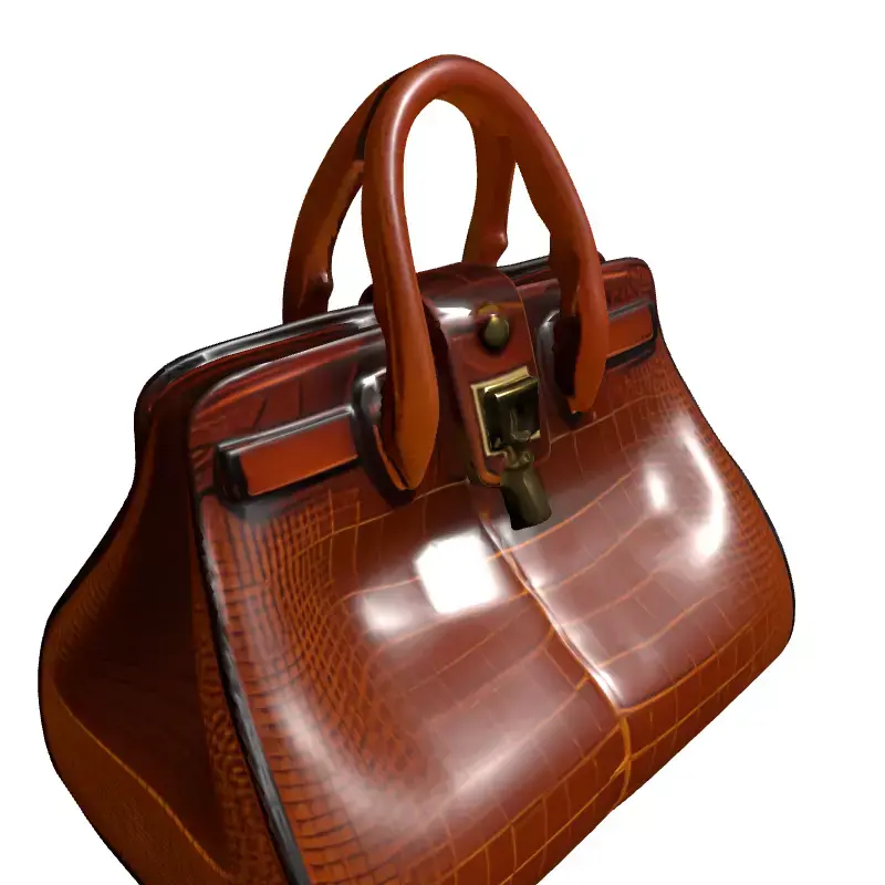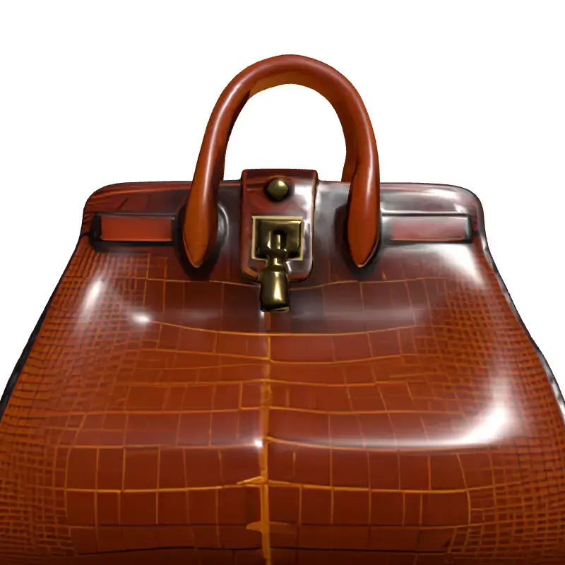 This meticulously crafted 3D model represents a luxurious women's handbag, featuring a distinct brown crocodile or alligator skin texture with a glossy finish. The classic and elegant design is complemented by intricate golden hardware, including a functional-looking clasp and key. This versatile asset is ideal for a wide range of applications, from high-fidelity fashion visualizations and e-commerce product showcases to enriching architectural interior scenes. It serves exceptionally well as a detailed prop for character customization or as an environmental element in virtual reality (VR) and augmented reality (AR) experiences. Game developers can integrate this model as a premium item within virtual worlds, while digital artists can utilize it to add a touch of sophistication to their renders. The model is designed with clean, optimized topology, ensuring smooth performance and easy integration into various pipelines. It comes fully UV unwrapped with high-quality PBR (Physically Based Rendering) textures, including diffuse, normal, roughness, and metallic maps, guaranteeing a realistic appearance under any lighting condition. Supported file formats include GLB, OBJ, FBX, USD, and DAE, making it compatible with most 3D software and game engines. While perfect for high-resolution static renderings, its well-structured mesh allows for potential real-time optimization or subdivision for even finer detail.