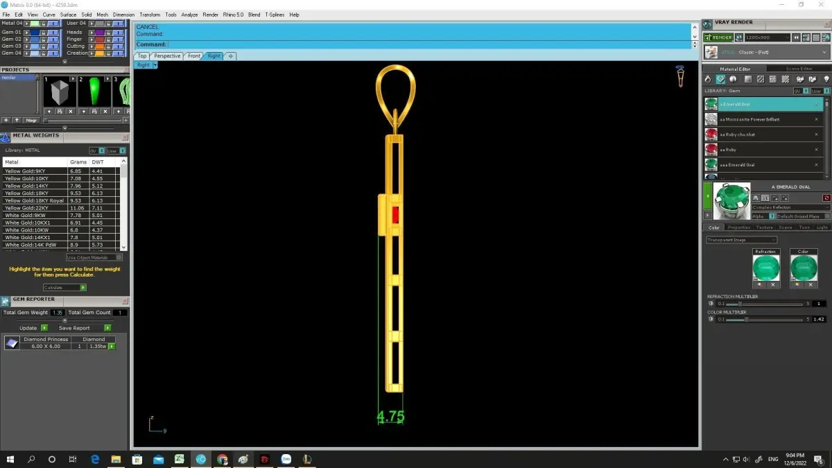 All preview images display complete technical information including dimensions, stone size, stone placement, and estimated metal weight, ensuring accurate preparation for casting and production.
