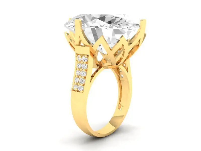 This luxury crown large gemstone ring 3D model features a stunning and elegant design with a big round-cut center stone elevated on a royal-style crown setting.