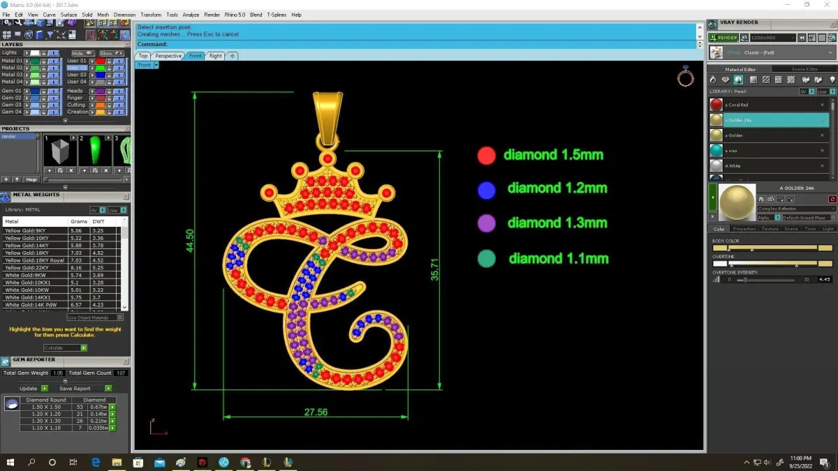 The pendant features pavé gemstone settings that enhance brilliance and give the design a refined, high-end appearance. Multiple gemstone variations are shown in the preview images, making the model suitable for customized production based on different color themes or personal preferences.