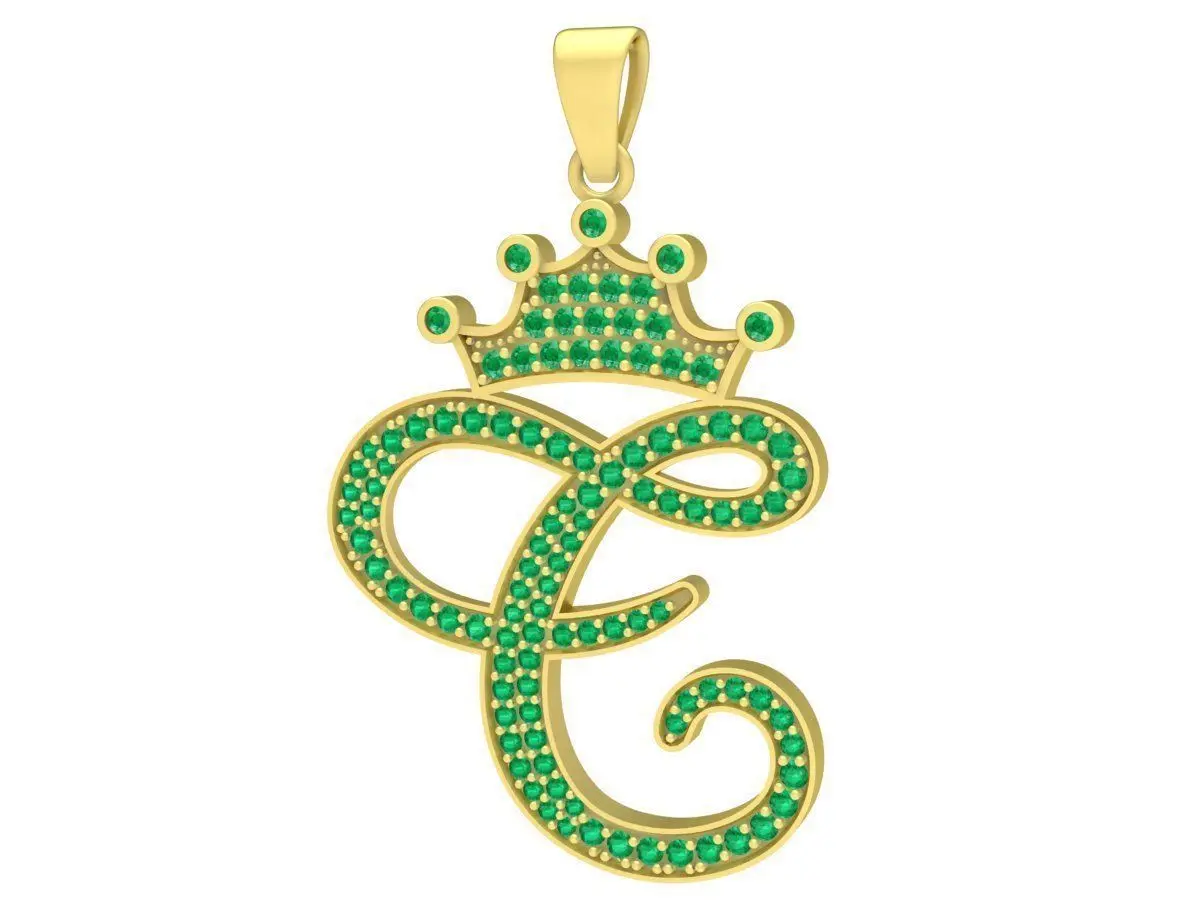 This luxury crown letter E pendant 3D model represents elegance, individuality, and personal identity. The letter E is designed with smooth flowing curves and topped with a royal crown, symbolizing power, confidence, and prestige.