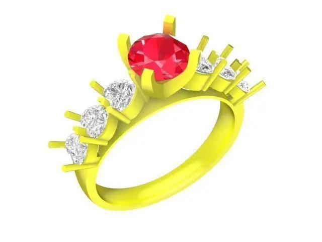 The model is professionally designed for jewelry manufacturing and optimized for casting in gold, silver, platinum, or other precious metals. The center setting is engineered to securely hold round gemstones such as ruby, emerald, sapphire, diamond, or other colored stones, while the side accent stones add sparkle and enhance the regal appearance.