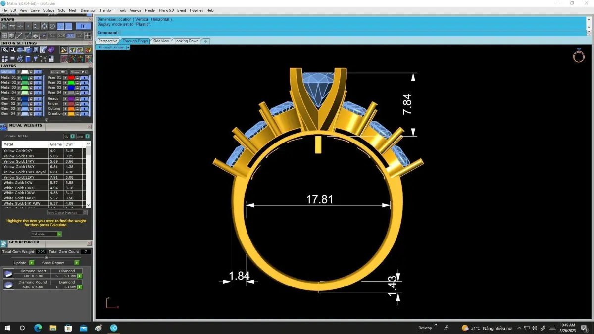 High-quality rendered images are included, clearly displaying full dimensions, stone sizes, band thickness, estimated metal weight, and overall proportions. These references allow jewelers and manufacturers to accurately evaluate the design before production or customization.