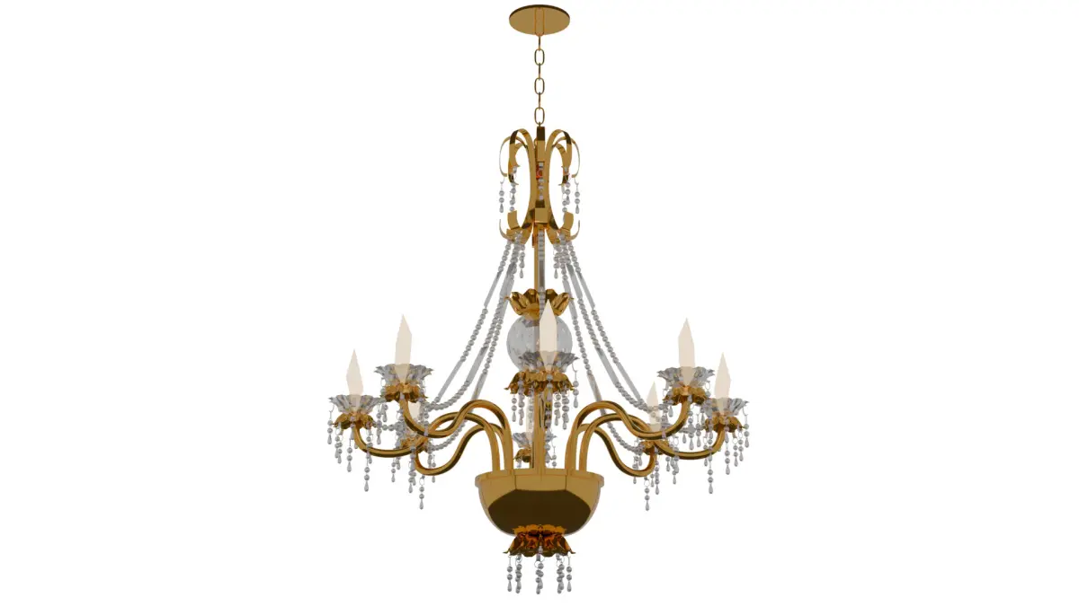 Illuminate your scene with this stunning crystal chandelier, designed to bring elegance and sophistication to any interior project. This beautifully detailed 3D model features golden metal arms, sparkling crystal droplets, and realistic candle-style lights, making it perfect for luxury interiors, royal palaces, classic mansions, or high-end architectural visualizations.