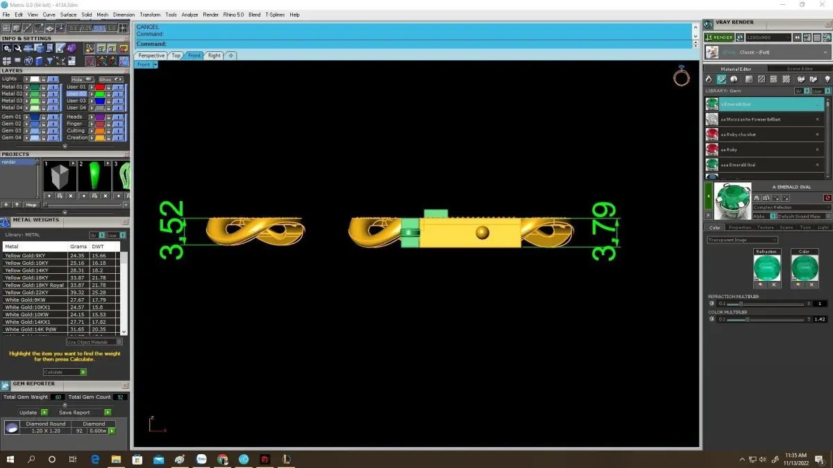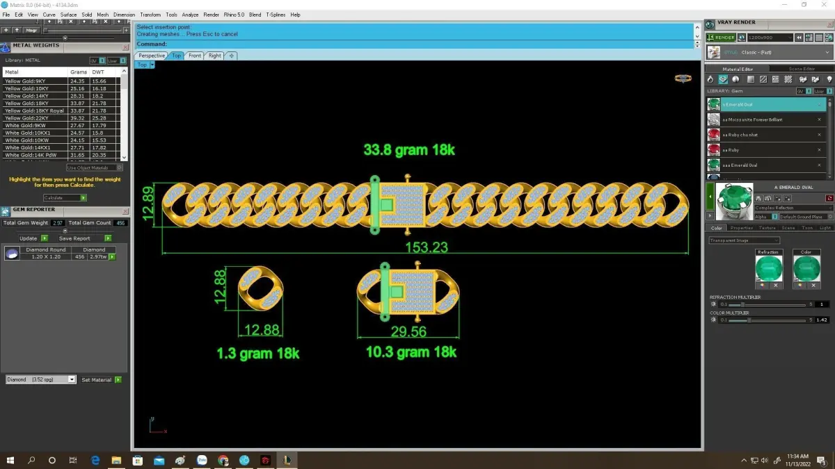 The design is fully optimized for jewelry production, including casting, stone setting, and weight estimation. All dimensions, stone sizes, stone quantities, and metal weight information are clearly shown in the preview images to support accurate manufacturing.