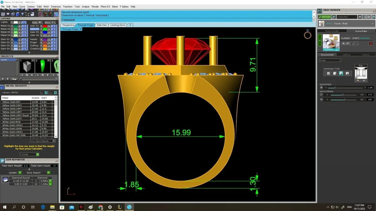 All dimensions, ring size, stone measurements, and metal weight are clearly shown in the preview images. The model is fully solid, watertight, and optimized for jewelry manufacturing, ensuring clean casting results and professional finishing.