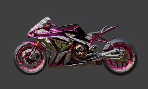 Tags motorcycle, futuristic, cyberpunk, luxury, chrome, neon, sci-fi, pink, vehicle, 3d model, game asset, aerodynamic, bike, tech, high-end