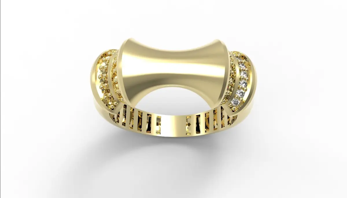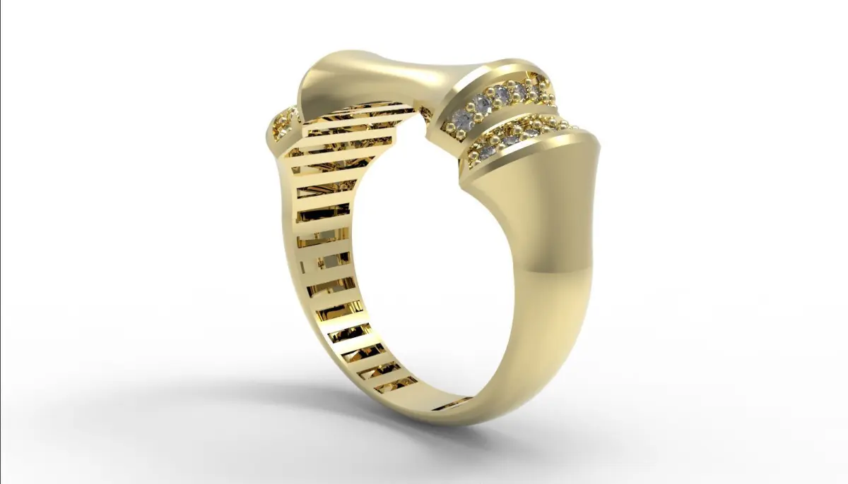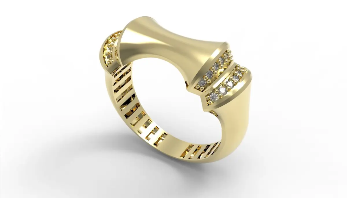 Crafted for those who seek originality and elegance, this ring blends modern geometry with timeless luxury. The inner band is detailed with structural cutouts, ensuring both style and comfort. Whether presented as a high-end jewelry piece, a concept model, or used in promotional visuals, this design delivers professional-grade quality.