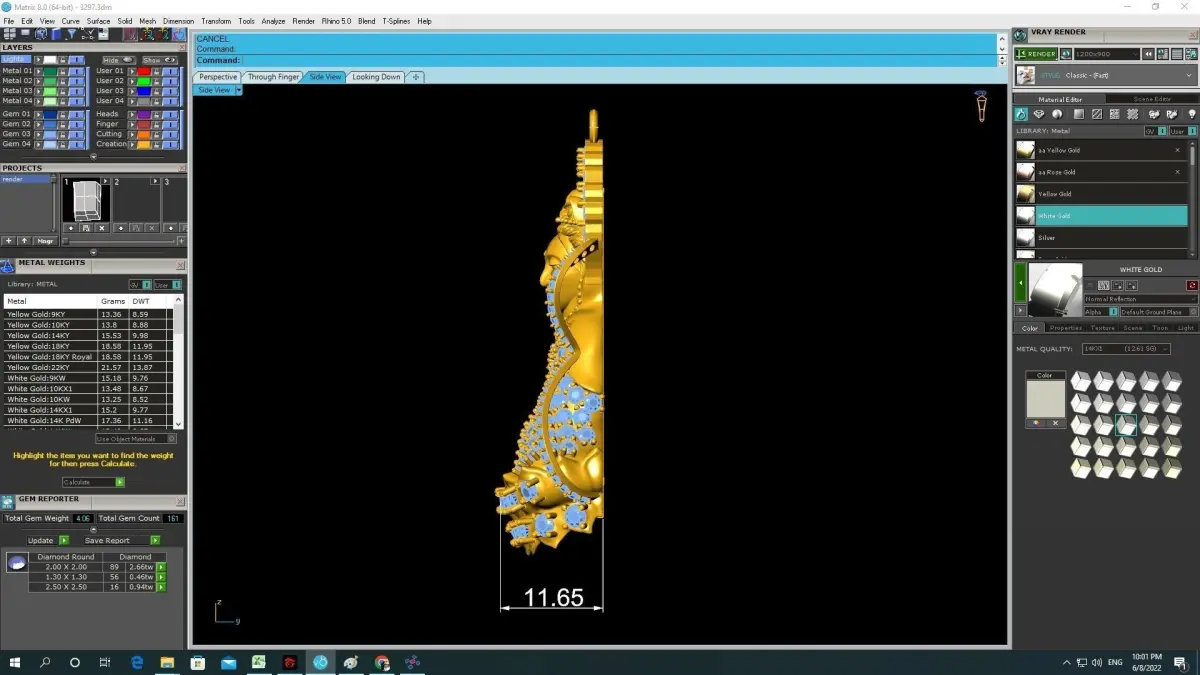 All dimensions, weight, stone sizes, and technical specifications are clearly displayed in the preview images. The model is clean, solid, and professionally optimized for jewelry production workflows including CNC machining, lost wax casting, and resin 3D printing.