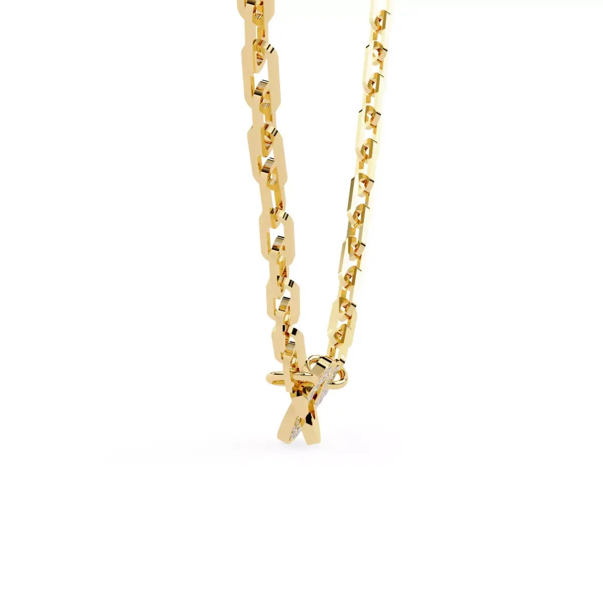 Design DetailsThe necklace features a decorative clasp integrated into the chain design.Clasp structure is engineered for secure locking and smooth functionality.Diamond accents are placed to enhance visual appeal without weakening strength.Chain links are balanced for flexibility, comfort, and durability.Connection points are designed for reliable assembly and long-term use.Clean geometry supports smooth casting, finishing, and polishing.CAD construction is optimized for professional jewellery manufacturing workflows.