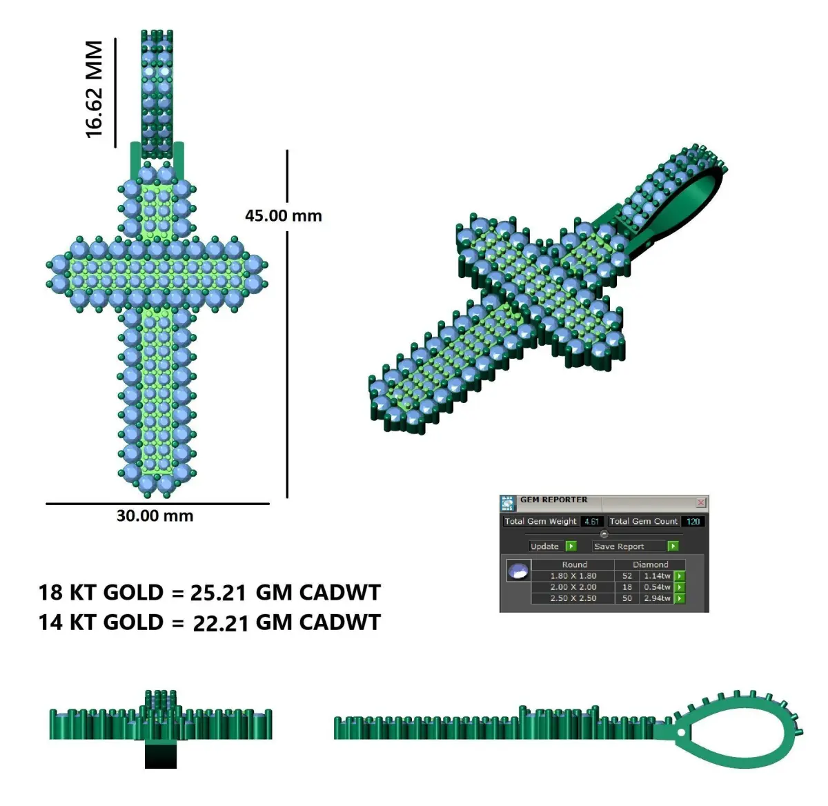The PS-27 Diamond Cross Pendant is a meticulously designed, high-end jewelry piece tailored for those who appreciate elegance and craftsmanship. This pendant features a symmetrical cross shape encrusted with round-cut diamonds in a detailed pavé setting, enhancing its brilliance and luxurious appeal. The sophisticated layout and precise CAD modeling ensure a balanced design, making it an exquisite statement piece.