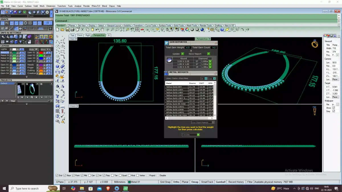 The CAD model is developed with clean geometry and precise detailing to minimize manufacturing errors and reduce post-casting corrections. This design is ideal for jewellery brands, manufacturers, and designers looking to offer sophisticated and timeless necklace styles for luxury and bridal collections.