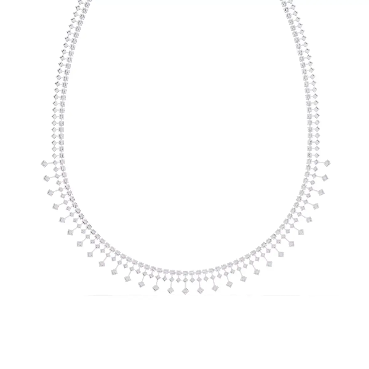 Design DetailsThe necklace features a continuous diamond drop pattern along the lower edge.Drop elements are evenly spaced to ensure symmetry and visual harmony.Each stone setting is accurately aligned for secure holding and clean finishing.The necklace structure is balanced for comfortable wear and smooth movement.Clean geometry supports reliable casting, polishing, and stone setting.The CAD construction is optimized for professional jewellery manufacturing workflows.