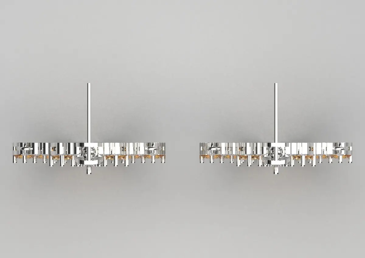 The earrings pictured are a pair of stunning chandelier-style pieces that exude elegance and sophistication. They are crafted using a silver or white metal that offers a sleek, polished look, enhancing the overall luxurious appeal.