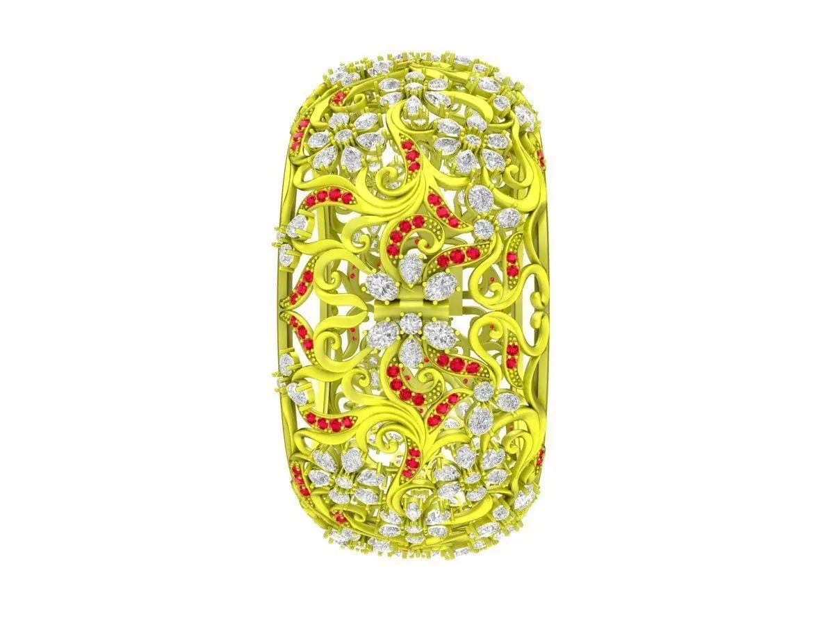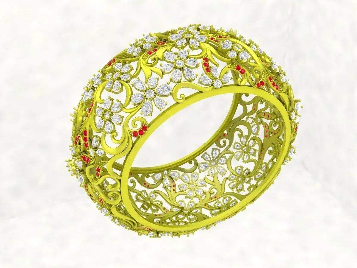 The Luxury Diamond Flower Women Bangle Bracelets 3D Model 7393A features an elegant floral motif adorned with sparkling diamonds, offering a refined and feminine appeal. Perfect for formal events, daily wear, or as a special gift.