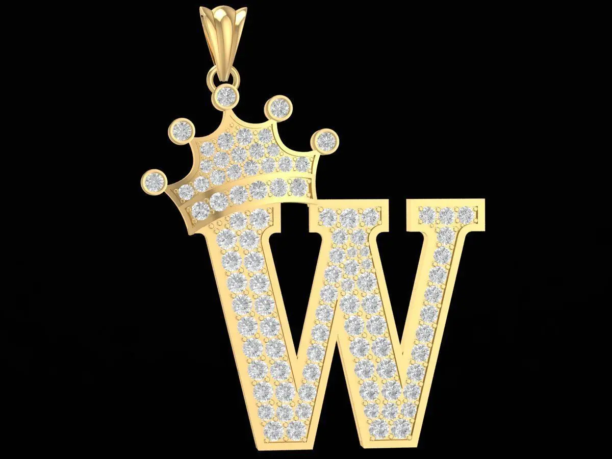 This luxury diamond letter W pendant is a high-quality 3D jewelry design created for professional manufacturing and premium custom jewelry collections. The pendant features a bold capital letter W design, fully set with precisely arranged round diamonds that enhance brilliance, sparkle, and visual impact.
