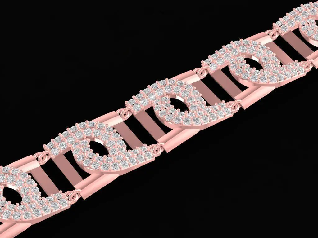 This Luxury Diamond Link Bracelet 3D model showcases an elegant sequence of oval links fully encrusted with brilliant-cut diamonds, creating a continuous sparkle across the wrist. The structure is designed with flexible joints for realistic movement and comfortable wear.