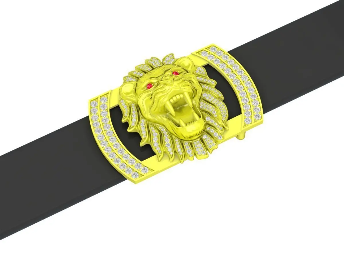 Luxury Diamond Lion Gold Belt Buckle 3D Model 4562A designed with a powerful lion motif, symbolizing strength, leadership, and prestige. Adorned with sparkling diamonds, this statement accessory enhances any outfit with elegance and authority. Perfect for business attire, fashion events, or as a luxury gift.