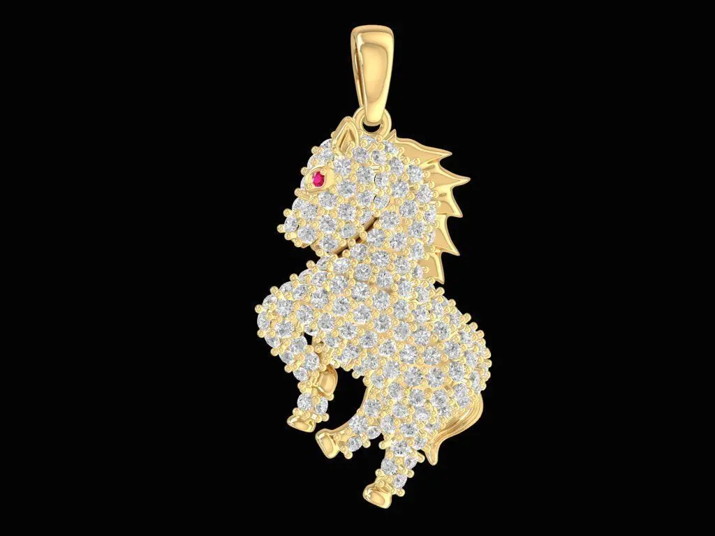 The pendant features a fully detailed lion’s head covered in meticulously arranged round-cut diamonds that create an impressive brilliance from every angle.