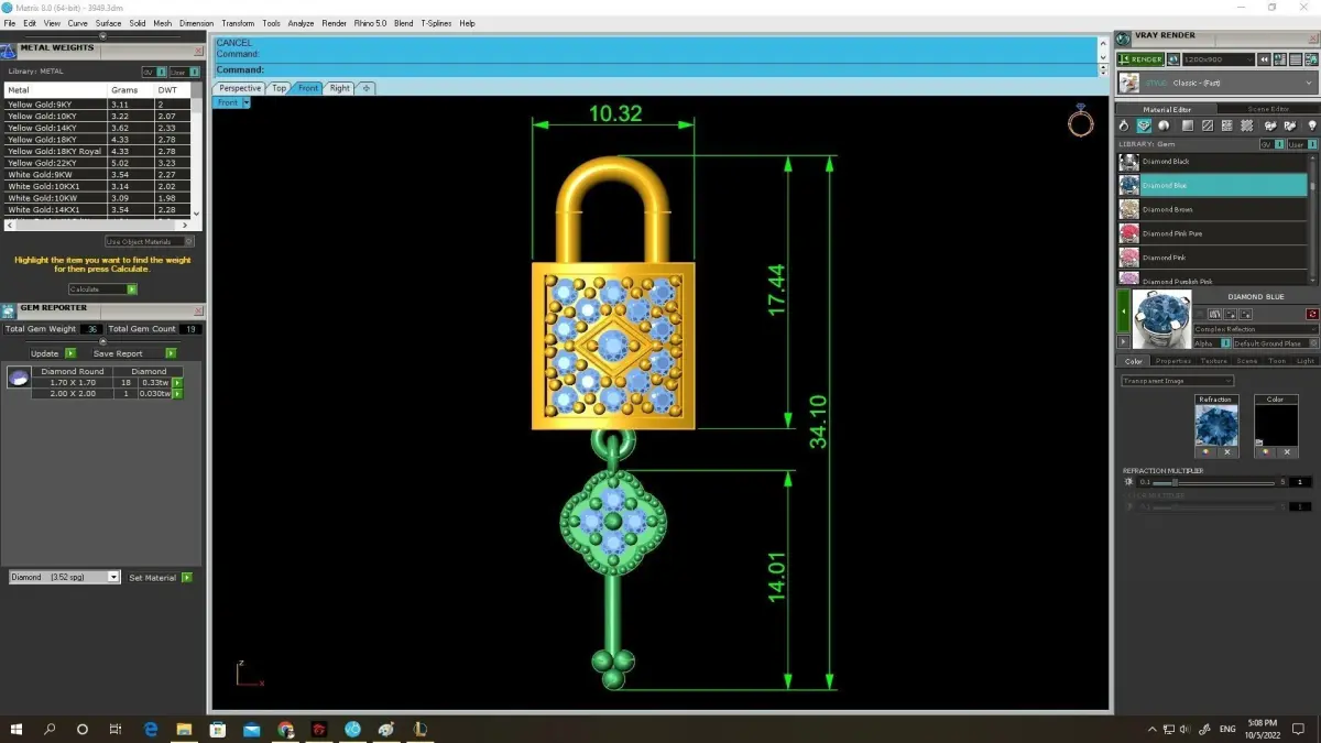 This luxury diamond lock pendant is a beautifully crafted 3D jewelry model designed for high-end gold and silver production. The piece features a refined geometric lock shape with an elegant bail and a fully detailed body, making it suitable for fine jewelry collections, unisex accessories, or symbolic designs representing security, protection, and commitment. The front surface showcases a balanced arrangement of gemstones, while the back and sides are modeled with precise proportions to ensure perfect casting and polishing results.